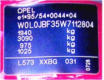 La plaquette se trouve à un endroit bien visible dans le compartiment moteur ou sur un des montants de porte |